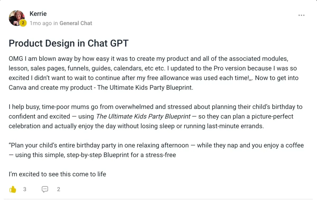 You’ll get support, feedback, and accountability from other creators walking the same path. Ask questions, share wins, and get help whenever you need it.
