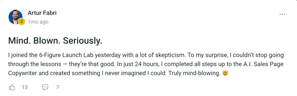 Now, I’ve turned that into the 6-Figure Launch Lab — a product that lets you go from “I don’t know what to sell” to “my product is live and selling” in just days.
